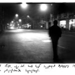 Guram Tsibakhashvili’s and Rita Khachaturian’s collaboration inspired by the second part of Ulysses – a stream of consciousness featuring “Penelope”, a female character from the last part of the book – unites 10 pictures. Photos are shot in various locations, on a digital camera. Along with texts, photos feature graphics by Khachaturian, overlaid on the pictures. Often, the artist draws the characters in using spaces on photos. Pictures and lighting accents, along with writings in white, read simultaneously, as if Joyce’s direct, unpunctuated thoughts are streamed directly with digital images.